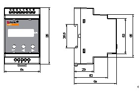 二次原理見圖4,DTSD1352-H在電流不大于63A時可直接接入,不需要經過電流互感器,大于63A時采用二次輸入0-5A。安裝結構為DIN35mm導軌,見圖5。