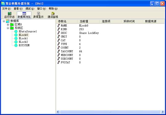 可以看到在系統區,自動生成若干系統點:$Lock0、$Lock1、$Lock1。這三個點分別顯示了示例中共享服務器為客戶端所提供的3種加密鎖的信息。