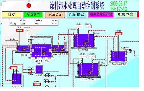 2#攪拌2分為手動和自動兩種,手動時將電控柜上的旋鈕打到“手動”檔上即可手動在電控柜上直接啟動/停止攪拌機,自動時將電控柜上的旋鈕打到“自動”檔上,即可在電腦上操作,電腦上操作時,點擊攪拌機狀圖案就會彈出1#攪拌2操作畫面,可以在電腦上任意啟動/停止2#攪拌2。 12. 1#鼓風機啟動停止方法: 1#鼓風機分為手動和自動兩種,手動時將電控柜上的旋鈕打到“手動”檔上即可手動在電控柜上直接啟動/停止泵,自動時將電控柜上的旋鈕打到“自動”檔上,即可在電腦上操作,電腦上操作時,點擊泵狀圖案就會彈出1#鼓風機操作畫面,可以在電腦上任意啟動/停止1#鼓風機。 13. 2#鼓風機啟動停止方法: 2#鼓風機分為手動和自動兩種,手動時將電控柜上的旋鈕打到“手動”檔上即可手動在電控柜上直接啟動/停止泵,自動時將電控柜上的旋鈕打到“自動”檔上,即可在電腦上操作,電腦上操作時,點擊泵狀圖案就會彈出2#鼓風機操作畫面,可以在電腦上任意啟動/停止2#鼓風機。 14. 硫酸電磁閥及硫酸PH設定: 硫酸電磁閥分為手動和自動兩種,手動時將電控柜上的旋鈕打到“手動’檔上即可手動在電控柜上直接啟動/停止閥,自動時將電控柜上的旋鈕打到“自動”檔上,即可在電腦上操作,電腦上操作時,點擊閥狀圖案就會彈出硫酸電磁閥操作畫面,點擊“手動”時,可以在電腦上任意開/關硫酸電磁閥,但是注意如果要自動運行須先看硫酸PH是否為所要求值,剛點擊“硫酸PH設定”時彈出的最小值和最大值可能都顯示0,等大約5S后就會出現先前設定的值,目前設定值為5—6,如須修改則點擊“硫酸PH設定”即可修改,PH設定之后點擊“自動”即可自動運行 15. 液堿電磁閥及液堿PH設定: 液堿電磁閥分為手動和自動兩種,手動時將電控柜上的旋鈕打到“手動”檔上即可手動在電控柜上直接啟動/停止閥,自動時將電控柜上的旋鈕打到“自動”檔上,即可在電腦上操作,電腦上操作時,點擊閥狀圖案就會彈出液堿電磁閥操作畫面,點擊“手動”時,可以在電腦上任意開/關硫酸電磁閥,但是注意如果要自動運行須先看液堿PH是否為所要求值,剛點擊“液堿PH設定”時彈出的最小值和最大值可能都顯示0,等大約5S后就會出現先前設定的值,目前設定值為7.5—8.5,如須修改則點擊“液堿PH設定”即可修改,PH設定之后點擊“自動”即可自動運行