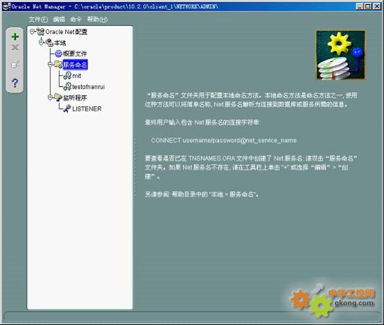 為了便于使用的方便,一般我們把某一個oracle數據庫系統上的某一個特定數據庫或者全局數據庫做一個映射,稱為“服務名”,然后使用服務名即可訪問數據庫。使用Net Manager管理工具: