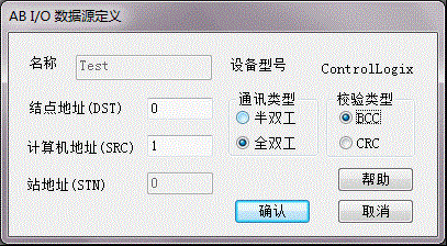 結點地址(DST):PLC的站地址,由于AB系列PLC 的型號不同,設備地址的范圍不同,所以對于某一型號設備的地址范圍,請見相關硬件手冊?赏ㄟ^編程軟件RSLogix5000來設定PLC的地址。