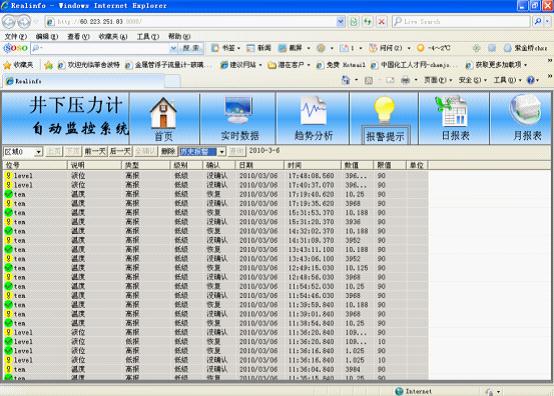 系統(tǒng)為重要的生產(chǎn)參數(shù)提供報(bào)警功能,只有一定權(quán)限的用戶才可以確認(rèn)當(dāng)前報(bào)警信息。這樣在不必在現(xiàn)場(chǎng)就可以知道各運(yùn)行參數(shù)是否正常。