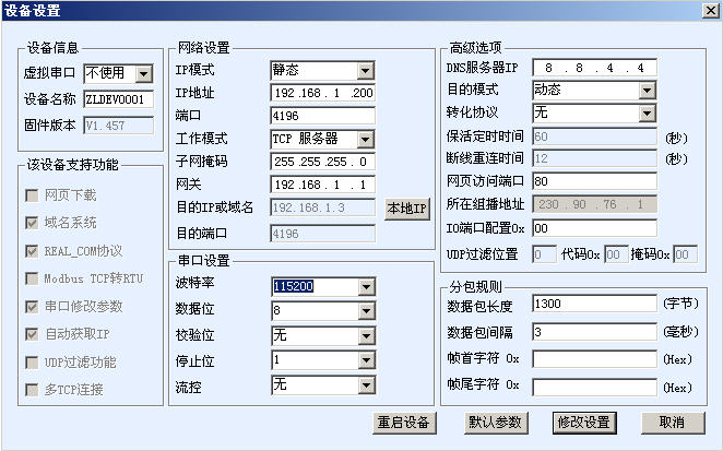 2.串口轉(zhuǎn)網(wǎng)口的參數(shù)