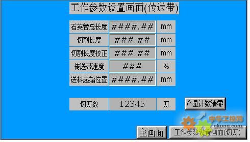 石英切割機有三個控制部分構成:切刀旋轉控制、切刀位置控制和送料位置控制。切刀旋轉控制只要速度可調即可;切刀位置控制需要在切割石英管或石英棒的過程中控制其位置和不同段內的速度,首先要保證切割產品的刀口質量,同時要提高生產效率;送料位置控制需要每次往前送設定長度的石英管或石英棒,精度要求0.2毫米。
