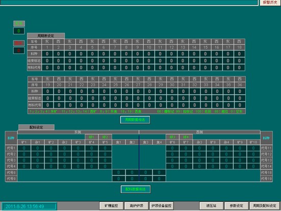 礦槽周期畫面,合理調節(jié)配方并自動生成配方。