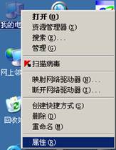 (1)選擇桌面“我的電腦”圖標,點右鍵,選擇“屬性”,如下圖