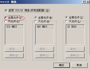 選擇“選項”,點擊“屬性”按鈕,打開“TCP/IP 篩選”對話框,如下圖: