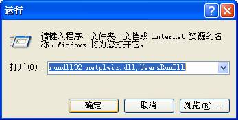 - 在運行框中輸入“rundll32 netplwiz.dll,UsersRunDll”,或“control userpasswords2”,單擊“確定”。如下圖:
