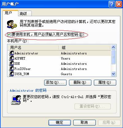 將上圖中的“要使用本機,用戶必須輸入用戶名和密碼”選掉,點擊“確定”或“應用”按鈕。