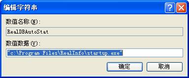 設置名稱為:RealDBAutoStat,值為:“紫金橋軟件安裝目錄\startup.exe”,如:”c:\Program Files\RealInfo\startup.exe”,如下