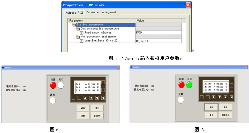 按下圖6中的起動按鈕,通過主站向ARD3T發送起動指令,ARD3T接收到主站命令后控制相應的控制繼電器動作,使電機進入運行狀態,可以看到三相電流由“0”變為“100”,表明電機主回路已接通進入運行狀態,運行指示燈亮,如圖7所示。