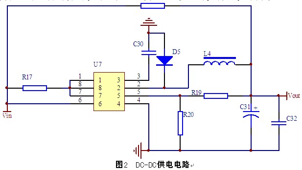 PROFIBUS模塊硬件框圖見圖1所示,圖1中ARD3T總線包括與PROFIBUS模塊進行通訊的內部總線和向ARD3T模塊供電的總線電源。PROFIBUS總線電源是通過DC-DC電路的方式將總線電源變為模塊所需的工作源,DC-DC芯片使用MC34063,供電電路設計見圖2所示。CPU單元負責和ARD3T主體通訊,控制VPC3等。PROFIBUS芯片選用VPC3。