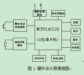 剩余電流互感器將感應出來的信號傳輸到剩余電流采集模塊,經過信號的轉換濾波后MCU利用片內AD模塊對各個通道的信號量進行AD采樣,并進行相應的數學運算,完成信號的精確測量,再按設置的保護參數,進行報警保護處理。同時MCU根據探測器的狀態,來控制LED數碼管顯示、數據計算\存儲、外部通訊、鍵盤菜單操作、繼電器開關動作、蜂鳴器報警等工作。
