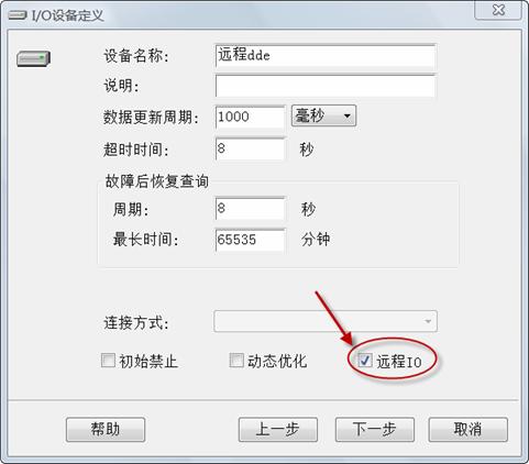 數(shù)據(jù)服務(wù)器端也需要定義設(shè)備和組點(diǎn)連接,就好像是數(shù)據(jù)服務(wù)器就在目標(biāo)機(jī)器上一樣。不過在定義設(shè)備的時(shí)候需要指明遠(yuǎn)程IO項(xiàng),如下圖所示。
