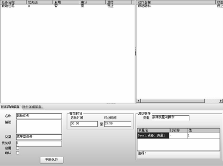 聯(lián)動(dòng)任務(wù)配置基本和時(shí)間表配置差不多,主要包括的功能有:任務(wù)的新增、任務(wù)的修改、任務(wù)的刪除,以及每個(gè)任務(wù)中包括的動(dòng)作的新增、動(dòng)作的修改、動(dòng)作的刪除。