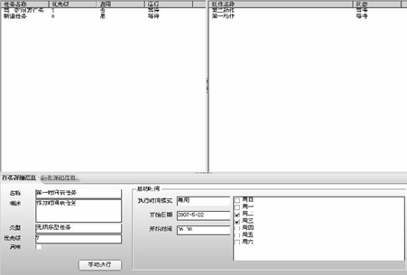 此模塊可以實(shí)時(shí)查看任務(wù)和動(dòng)作的執(zhí)行情況,還可以查看任務(wù)詳細(xì)信息、動(dòng)作詳細(xì)信息、手動(dòng)執(zhí)行任務(wù)。根據(jù)時(shí)間和任務(wù)類型,模塊還可以瀏覽歷史執(zhí)行的時(shí)間表任務(wù)。用戶還可以在需要的時(shí)候手動(dòng)執(zhí)行時(shí)間表的任務(wù)。任務(wù)信息如下圖: