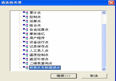 首先我們需要建立關(guān)系數(shù)據(jù)庫源點(diǎn):進(jìn)入點(diǎn)組態(tài)管理界面新建一個點(diǎn),選擇點(diǎn)類型為“關(guān)系數(shù)據(jù)庫源點(diǎn)”:
