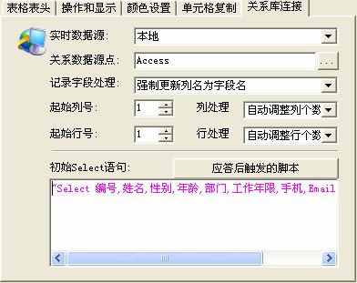 當(dāng)我們通過自由報表與關(guān)系數(shù)據(jù)庫連接時的組態(tài)界面如下: