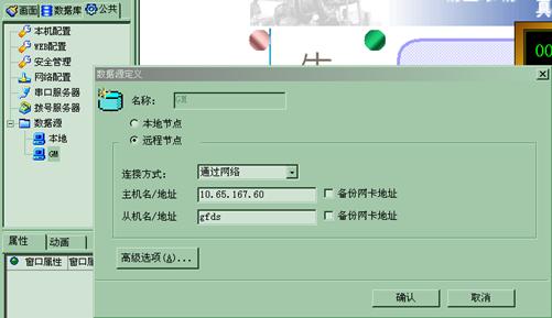 在公共-〉數據源下增加遠程數據源,在“數據源定義”對話框內選擇“遠程節點”并填寫遠程計算機的IP地址,這里的IP地址為前置機地址。