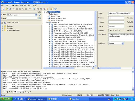 運(yùn)行Target Analyzer后,開發(fā)人員將這個(gè)工具收集到的可擴(kuò)展標(biāo)記語(yǔ)言(XML)數(shù)據(jù)導(dǎo)入到Target Designer(目標(biāo)設(shè)計(jì)器)中,Target Designer也包含在Windows Embedded