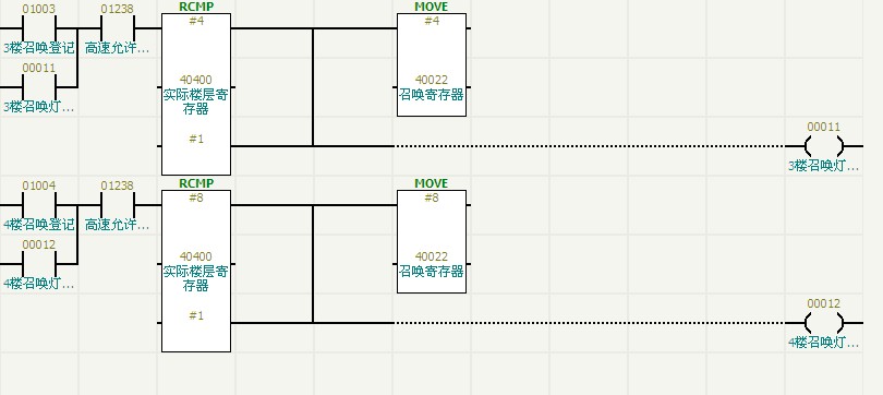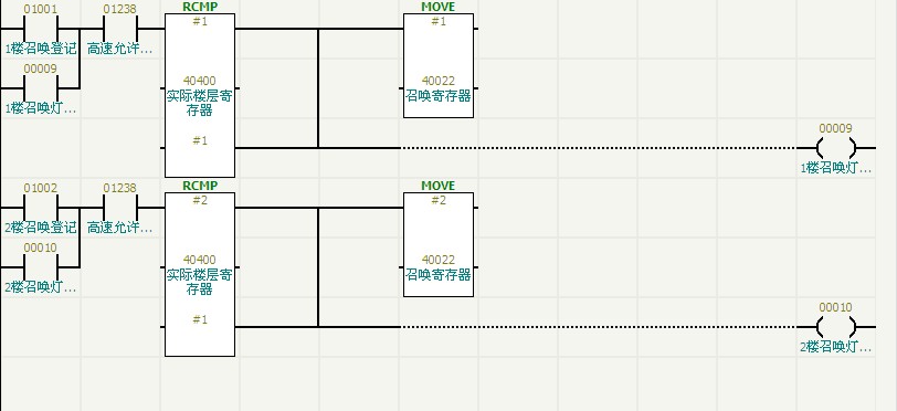 電梯控制系統是集選式控制方式,適合采用模塊化編程方法,下面介紹幾個模塊的梯形圖程序: