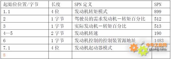 根據SPN參數定義我們就很容易知道發動機中的各種參數與狀態及實時測量值了。