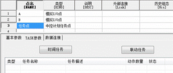 在實時數據庫中建立一個中控計劃任務點,它包括所有要建立的時間任務及其動,還有聯動任務及其動作。