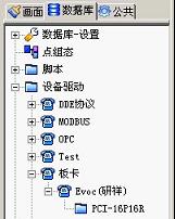隨后運行紫金橋開發系統,展開“數據庫”選項卡,找到“設備驅動-〉板卡-〉Evoc( 研祥 ) ”驅動,如下圖所示:
