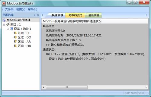 紫金橋的Modbus服務器從1.0開始到3.1版本,功能不斷提升,但是都只能仿真一個Modbus設備的HR區域。新的紫金橋Modbus服務器為4.0版本,它無論在界面上,還是功能上都有了很大的提高。80%以上的代碼都使用.NET開發工具進行了重寫。現在紫金橋Modbus服務器已經可以把實時數據庫中的數據映射為任意數量的Modbus設備的所有區域。