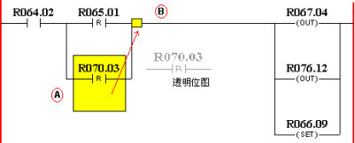 圖 3 復(fù)雜的邏輯圖 2) 常用操作的易學(xué)性 軟件的實(shí)用和易學(xué)易懂性是另一個(gè)十分重要的指標(biāo),也是WinGPC 4.0的重要突破口之一。復(fù)雜的操作不僅會(huì)給用戶帶來學(xué)習(xí)培訓(xùn)的額外負(fù)擔(dān),同時(shí)也是造成錯(cuò)誤的潛在因素。 微軟的Windos操作已經(jīng)深入人心,基于Windows的操作習(xí)慣給用戶帶來了方便。根據(jù)20%/80%法則分析基于Windows的操作,WinGPC 4.0大量采用以下基于Windows的常規(guī)操作來對(duì)梯形圖進(jìn)行編程,而這些操作是無(wú)需學(xué)習(xí)的、并且是很常用的。 l 拖放操作 (Drag & Drop):用戶可以隨意拖放Rung,Branch,指令或Branch的“腳”,在拖放過程中,不僅有一個(gè)透明位圖顯示被拖拉的內(nèi)容,同時(shí)還會(huì)以色塊指示最近的合法放置點(diǎn)以方便用戶確認(rèn)是否到達(dá)目的地,圖 4顯示了將R070.03觸點(diǎn)從A點(diǎn)拉到B點(diǎn)的過程。