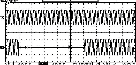 圖3. 系統發生短時供電中斷時,ASD運行的實驗結果 上:負荷A相電壓;下:系統A相電壓