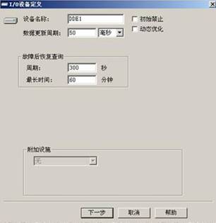 此處采集類型中的變化通知項是指驅動并不直接采集數據,只有當數據發生了變化時,才進行采集數據。周期采集是,簡單的周而復始的采集。推薦使用周期采集,只有服務器中的數據變化比較緩慢才建議使用變化通知項。否則由于變化通知選項需要發送變化消息,在數據頻繁變化時,采集速度反而降低。