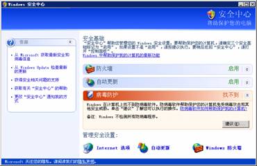 進入“控制面板”,選擇“安全中心”,打開“Windows安全中心”配置窗口。