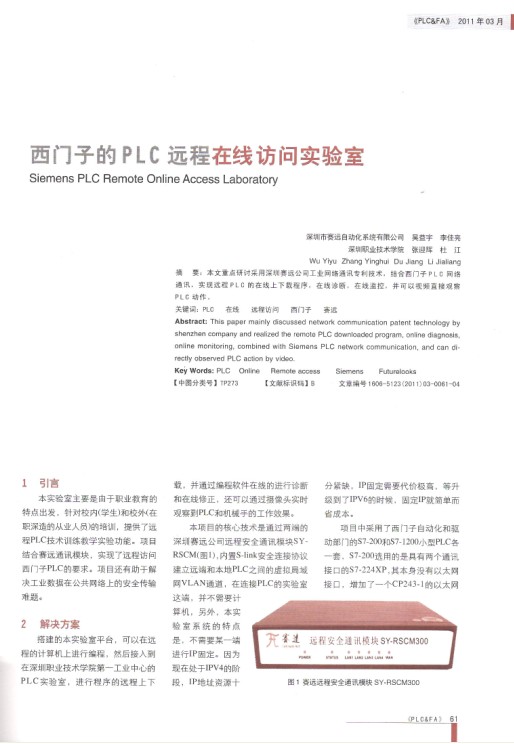 西門子的PLC遠程在線訪問實驗室,采用賽遠領先的工業(yè)通訊技術,聯(lián)合深圳職業(yè)技術學院,共同組建了遠程在線PLC實驗室,通過實驗室,學生可以在任何能夠上網(wǎng)的場合進行PLC的實訓訓練,系統(tǒng)運行穩(wěn)定、安全,技術領先,是響應政府節(jié)能環(huán)保之倡導,為提供便捷的學習通道而搭建。
