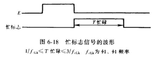 3)忙標志寄存器:當忙碌信號為高電平“1”時,表示HD61202U正在進行內部工作。除了狀態讀取指令外,其他任何指令都不接受。忙碌信號是由狀態讀取指令所讀出的DB7值代表每次要提取指令以前,應該先確定忙碌信號已清除為“0”。忙碌信號設為“1”。的時間由點陣圖形液晶顯示模塊的內部脈沖頻率所決定,如圖6-18所示。