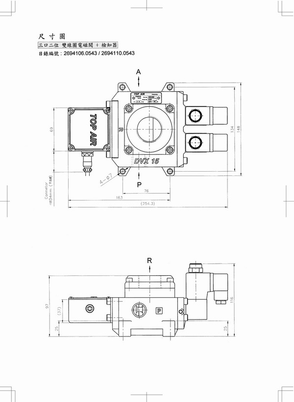 TOPAIR雙聯安全閥DVX15系列付檢知器尺寸圖