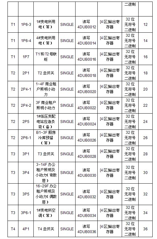 根據環智國際大廈高低壓配電系統一次圖確定需要進行監控的回路,并根據現場配電柜安裝的實際位置合理確定通訊線纜的走向及通訊端口的分配,如下表所示(部分):