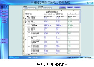 用電量報(bào)表功能,可選擇時(shí)間段進(jìn)行查詢,支持任意時(shí)間段電度累計(jì)查詢,具備數(shù)據(jù)導(dǎo)出和報(bào)表打印等功能。為值班人員提供了精確可靠的電能報(bào)表。見圖(5)。