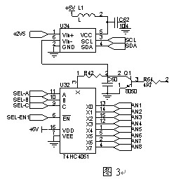 撥碼開關輸入電路用于設定本裝置的通訊地址、通訊波特率、數據格式等參數,使用一個八選一模擬開關U20,對外部撥碼J12每一位進行動態掃描檢測,撥碼開關輸入和開關量輸入的控制總線為共用結構,此方式的優勢是節約CPU的IO口線,缺點是程序處理稍復雜,需要使用動態掃描方式一路一路檢測(圖7)。