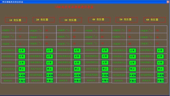 這樣下來我們的系統(tǒng)就完成了,下圖為1#配電室變壓器溫度信息及狀態(tài)表。