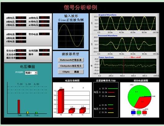 電壓、電流波形計(jì)數(shù)值顯示界面,以及棒圖、餅圖的顯示