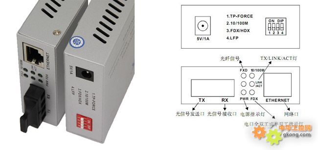 TX——光信號發送口 常亮,光口發送連接正常; 不亮,發送連接錯誤 RX——光信號接收口 常亮,光口接收連接正常; 不亮,接收連接錯誤 FDX——電口全雙工或半雙工指示燈 常亮,電口工作于全雙工;不亮,半雙工;閃亮,半雙工有碰撞 LNK/ACT——TX/LINK/ACT燈 常亮,光纖連接正確正常; 不亮,光纖連接錯誤;閃亮,電口有數據傳輸100M 常亮,電路速率為100M;不亮,電路速率10M PWR——電源指示燈 常亮,電源工作正常,反之錯誤
