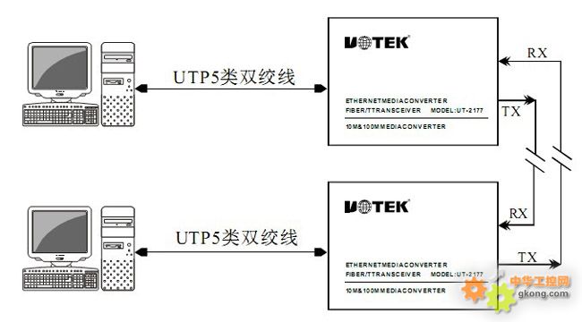 光纖連接參數 ■ 傳輸光纖 多模:50/125,62.5/125,100/140μm 單模:8.3/125,8.7/125,9/125,10/125μm ■ 傳輸距離 多模:5km 單模:20km、40km、60km,根據用戶需求可超過120km 連接線纜UTP5類線:100m 網絡光纖收發器安裝示意圖: