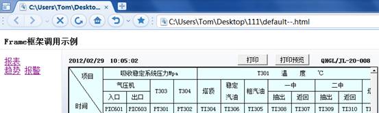 這樣就能夠?qū)崿F(xiàn)在frame_b.html點(diǎn)擊【報(bào)表】、【趨勢(shì)】、【報(bào)警】三個(gè)鏈接,控制在Showframe子框架內(nèi)調(diào)用對(duì)應(yīng)的紫金橋?qū)崟r(shí)數(shù)據(jù)庫(kù)web頁(yè)面。