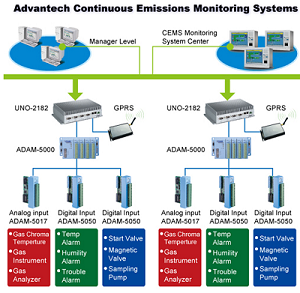系統描述: CEMS適用于所有的持續性的排放監控系統,它包括實時監控廢氣排放和排放容量,并傳輸數據到一個環保部門中心站點,CEMS項目適用于研華所有的產品,如嵌入式工業電腦(UNO)和工業以太網模塊(ADAM-5000)。專業的無風扇和抗震動設計保證了在苛刻的工業環境穩定的運行。MTBF達到60000小時,大大節約了維修成本。 氣體分析儀、灰塵分析儀和數據獲取處理器是CEMS三大主要部分構成。他們采用實時的持續的監控主要污染物的濃度,如灰塵、SO2、 Nox在工業鍋爐、工業窯爐和電氣鍋爐。他們業提供氣體溫度、壓力、流量和O2量。系統自動收集數據通過Internet并傳輸數據到中心站和環保部分。工作人員也可以通過Internet獲得實時數據和報告,這確保相關部門對污染排放量控制項目和酸雨監控項目盡在掌握,并提供對污染物的監測的方法。 總結: 數據采集處理器是收集氣體溫度參數、壓力、流量和O2量等等的信息。同時,需要一些數字I/O和自動的數據處理。對需要收集更多的仿真數據的客戶,具有較大的內存和具有較多的COMM口與氣體分析儀和灰塵分析儀相連接。 并且,研華為客戶提供方便的,兼容的和節省時間的方案。研華幫助客戶可以完成一站式服務,而不是大量的外包工作。 兼容性在軟件產品-硬件產品,軟件產品-軟件產品,硬件產品-硬件產品之間已經不是一種問題,已經可以在不同產品品牌之間進行集成。