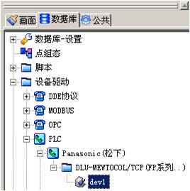 首先,打開開發系統的數據庫選項卡,雙擊“點組態”項進入數據庫配置界面。
