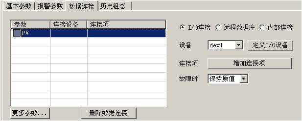 接著,在改點的“數據連接”參數頁中選擇I/O連接,并選擇相應的設備。