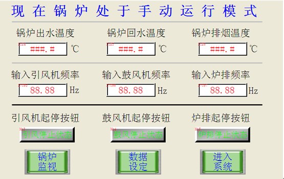 2.2“系統(tǒng)首頁”:有多個參數(shù)設(shè)置畫面的選擇,可以選取任意畫面進(jìn)行監(jiān)視鍋爐的運行狀態(tài)。