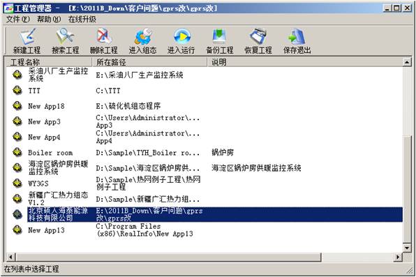 a. 進(jìn)入工程管理器,在工程目錄下選擇要備份的工程(選中的工程為藍(lán)色背景),如下所示: