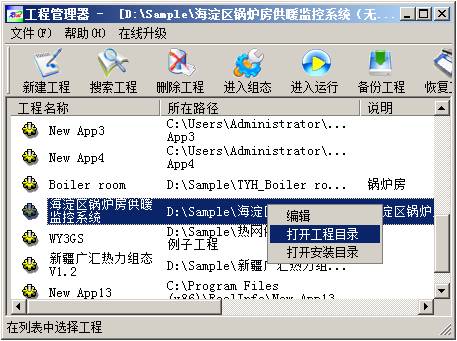 a. 進(jìn)入工程管理器,選擇要拷貝的工程,單鼠標(biāo)右鍵,在彈出菜單中選擇“打開(kāi)工程目錄”,如下所示: